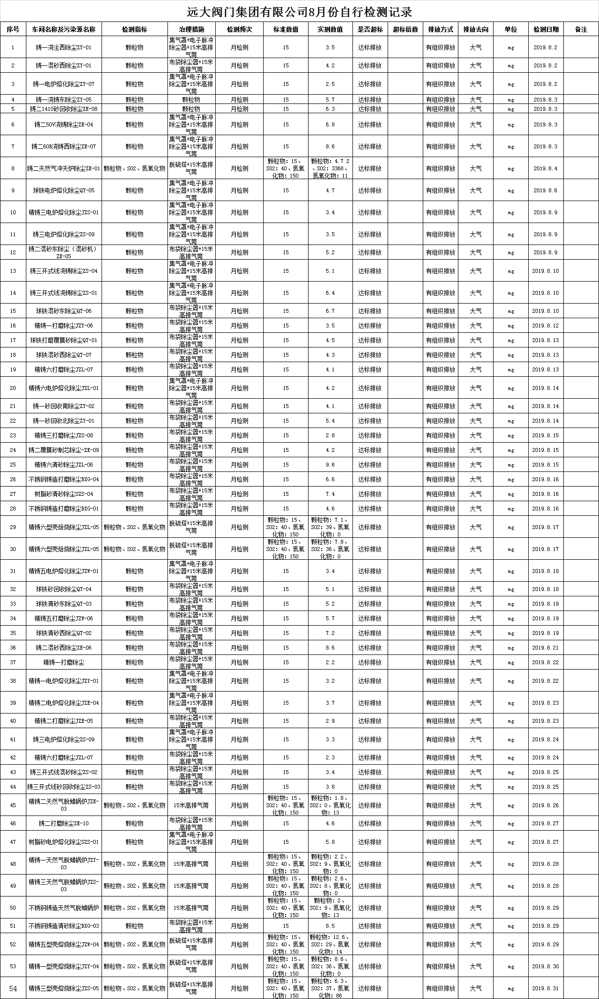 远大阀门集团有限公司2019年8月份污染物检测记录