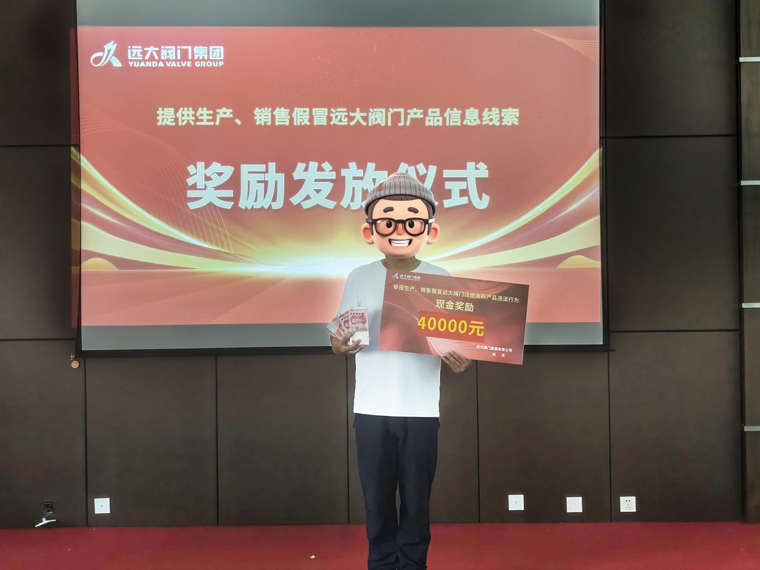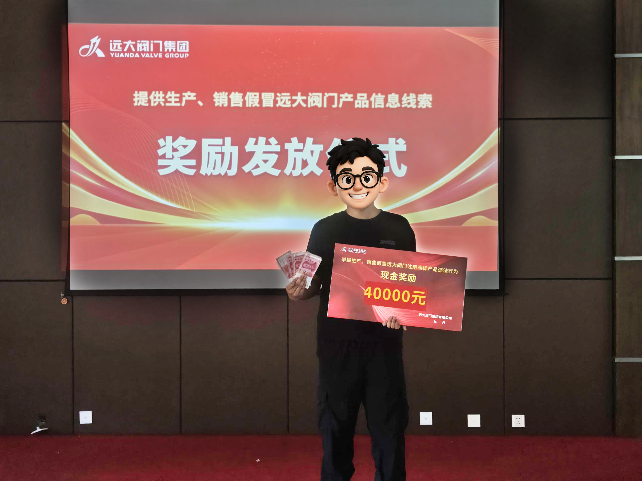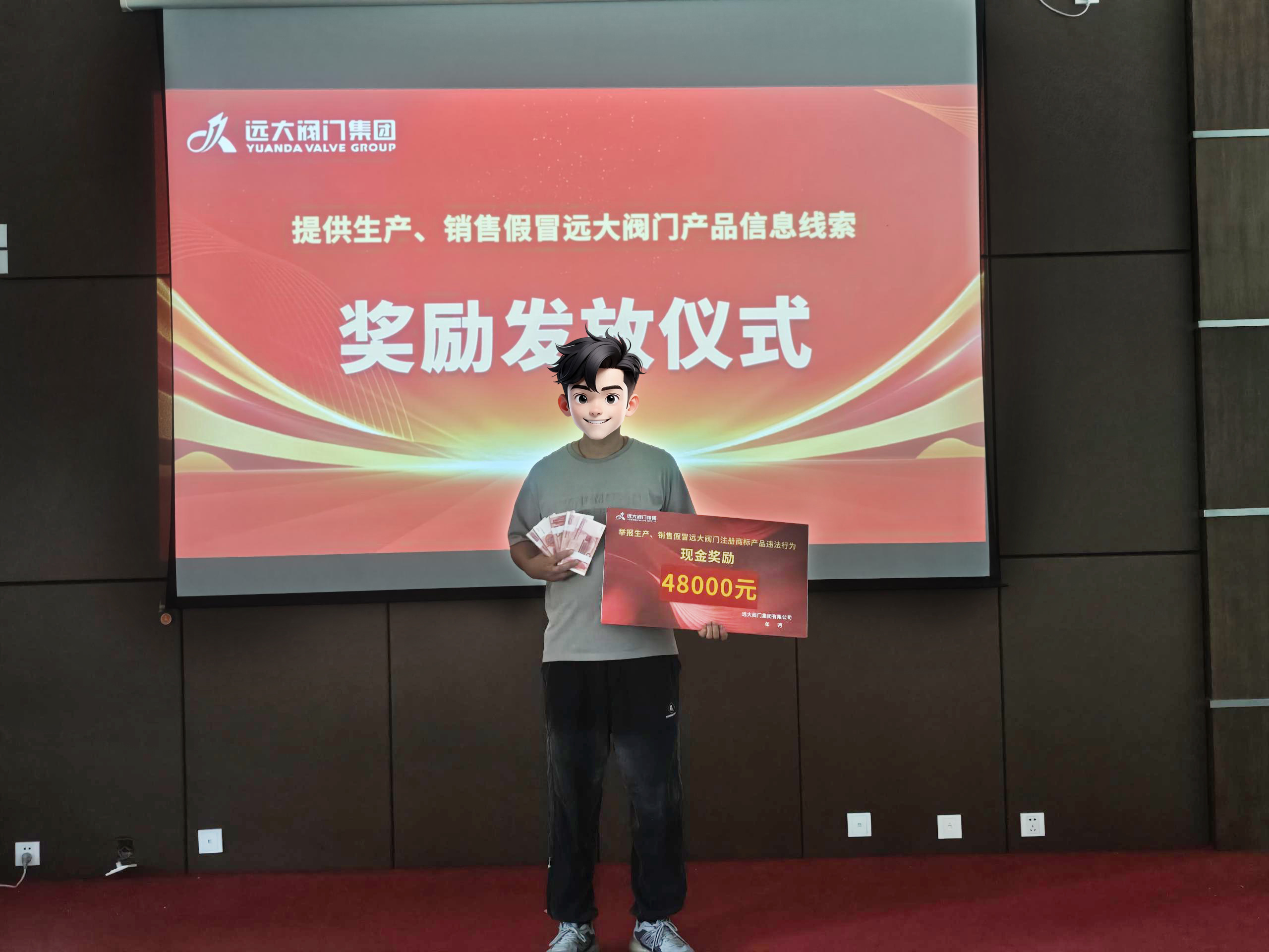 2025年8月,远大阀门集团总部对查处销售、生产假冒远大阀门注册商标产品案件的举报有功人员,给予奖励,本次分别对3名人员奖励4万、4.8万、4万,共计12.8万元,感谢他们协助我司打击假冒侵权行为所做出的贡献,让侵权行为得到了应有的惩罚。